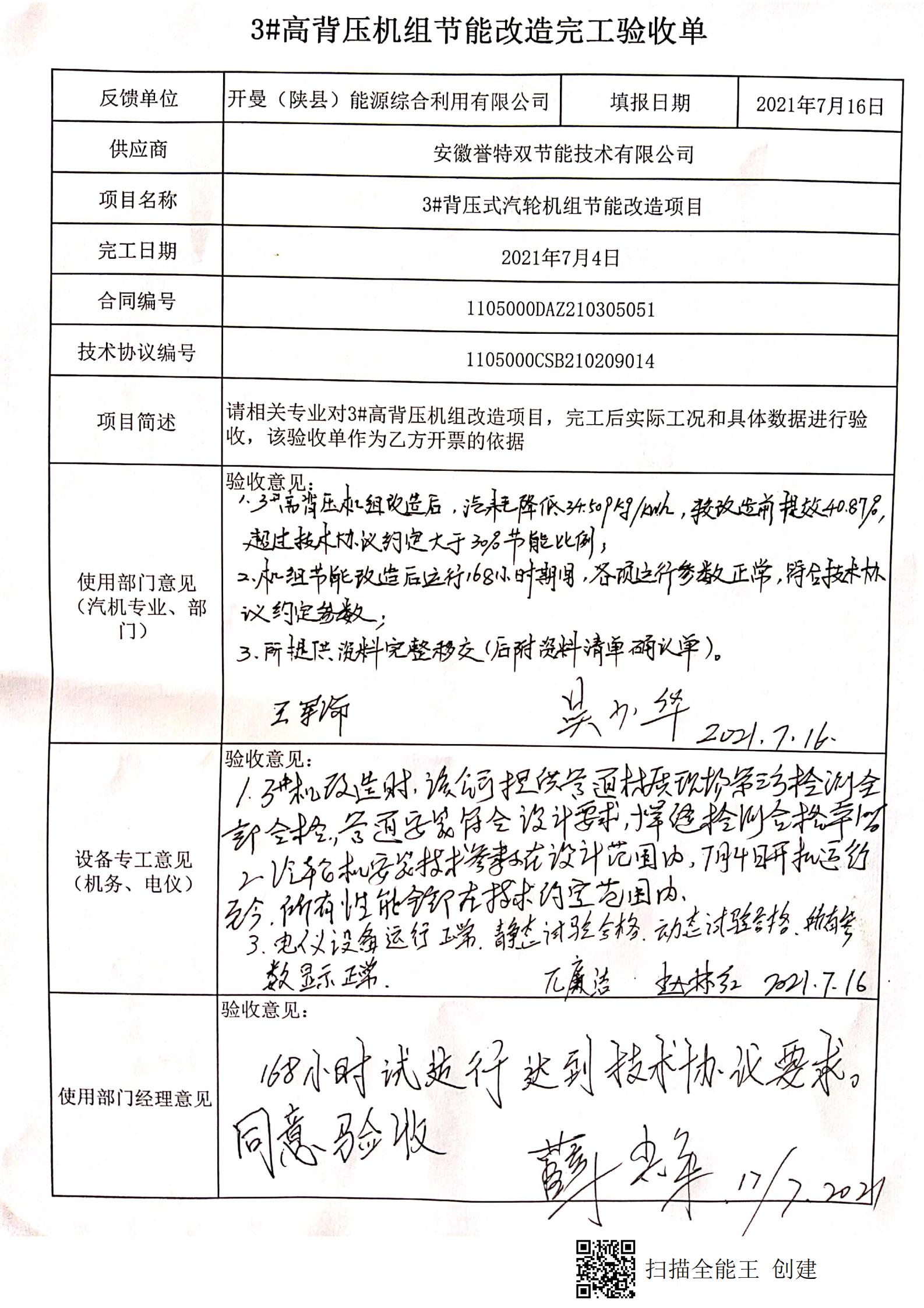 近日,我公司客戶中企五百強企業(yè)——杭州錦江集團三門峽開曼(陜縣)能源綜合利用有限公司7.5MW高背壓式汽輪機組節(jié)能改造EPC項目順利通過工程驗收,在此表示熱烈祝賀。