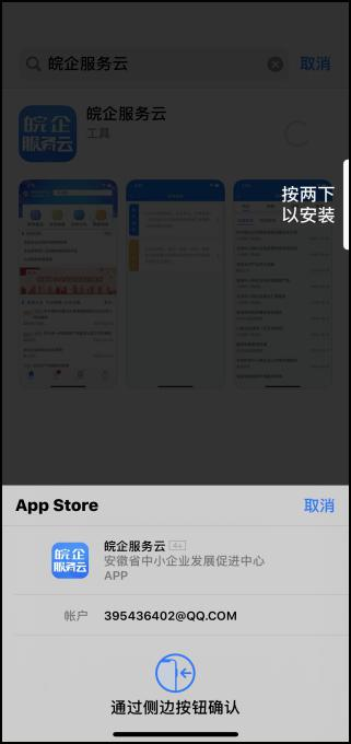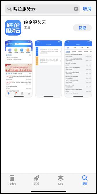 2、蘋果手機用戶在 APP Store 里搜索“皖企服務云” 并點擊“獲取”下載安裝;