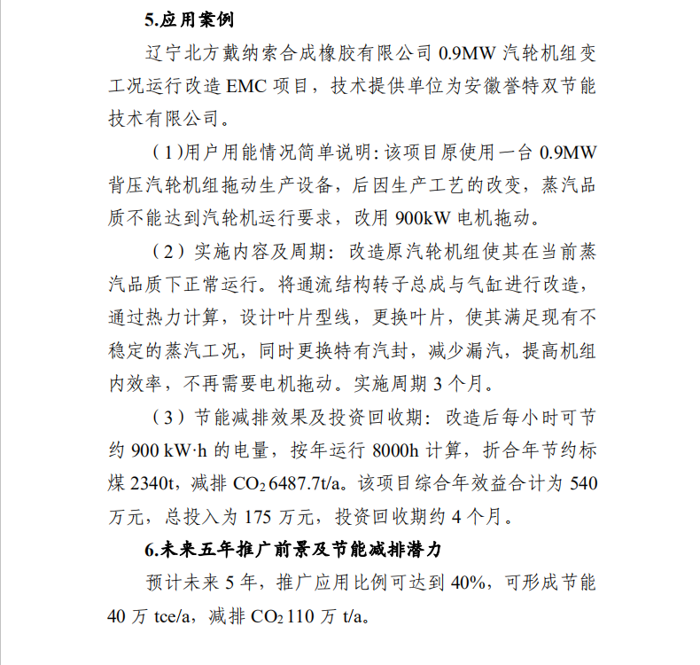 這是繼公司核心技術(shù)“工業(yè)蒸汽輪機通流結(jié)構(gòu)技改提效技術(shù)”,2019年獲得國家工業(yè)和信息化部《國家工業(yè)節(jié)能技術(shù)應用指南與案例(2019)》之后,又一次獲得國家級榮譽,同時標志著我公司當前已有兩項核心工業(yè)節(jié)能技術(shù),正式獲得國家級層面的推廣與市場應用支持。