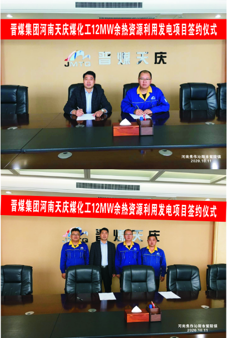 熱烈祝賀公司簽訂中國(guó)五百?gòu)?qiáng)國(guó)企晉煤集團(tuán)天慶煤化工 余熱資源利用12MW發(fā)電項(xiàng)目