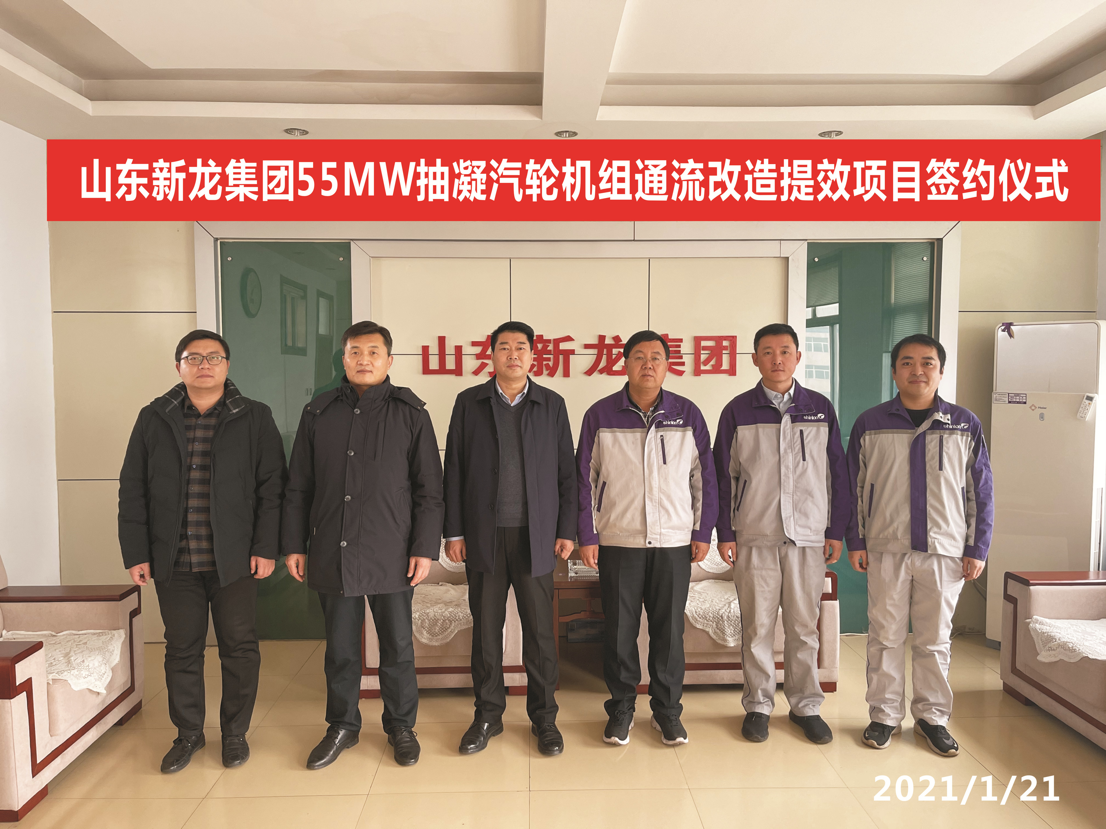 2021年1月21日,經(jīng)長期跟進和客戶信任,我公司安徽譽特雙節(jié)能技術(shù)有限公司,順利簽定中國民企五百強企業(yè)——山東新龍集團有限公司55MW抽凝式汽輪機組通流結(jié)構(gòu)綜合技改增效技術(shù)服務(wù)項目,合同額度逾千萬元,由我公司以技術(shù)服務(wù)的方式進行技改增效實施。