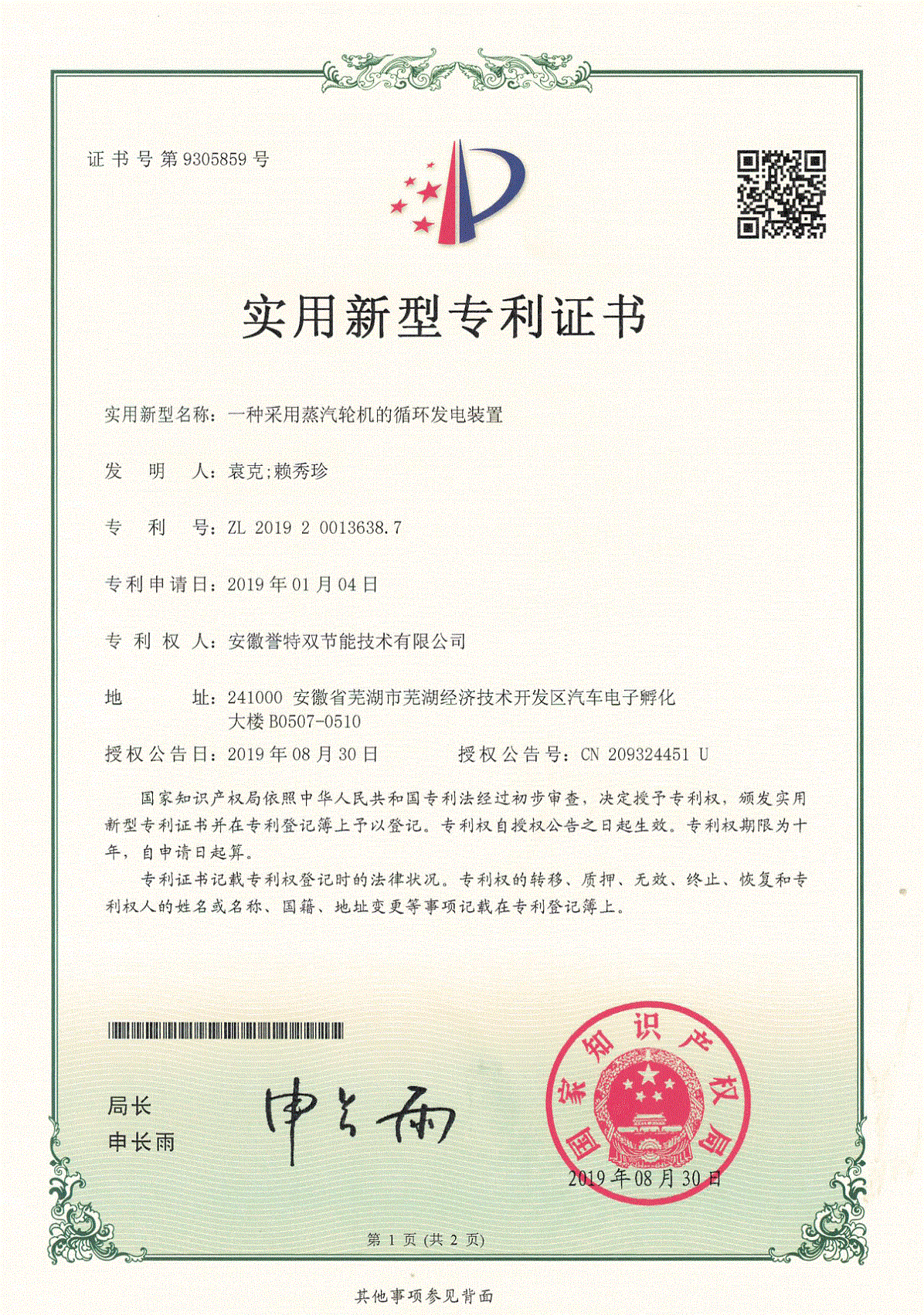 近日,我公司申報的“一種改進(jìn)型蒸汽輪機(jī)的通流結(jié)構(gòu)”、“一種蒸汽輪機(jī)的增壓裝置”、“一種蒸汽輪機(jī)的改進(jìn)型氣封裝置”等10項實用新型專利通過國家知識產(chǎn)權(quán)局審核,并順利獲取實用新型專利證書。