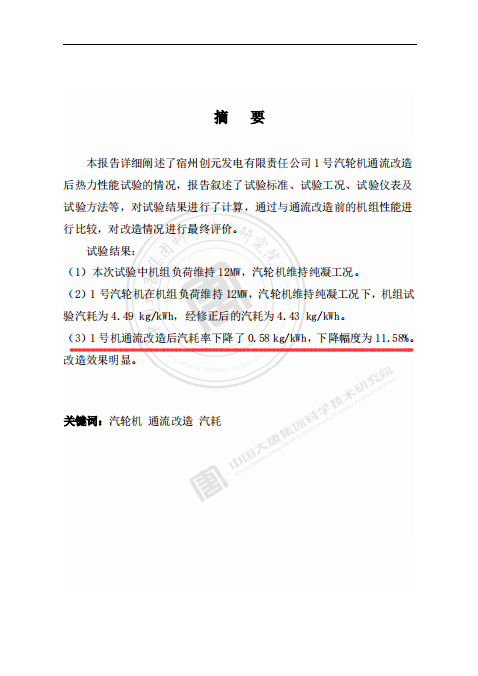 2019年5月15日,由我公司以EPC模式全額投資技改實施的宿州創(chuàng)元發(fā)電有限責任公司1#汽輪機組綜合技改提效項目,順利通過第三方節(jié)能量驗收。