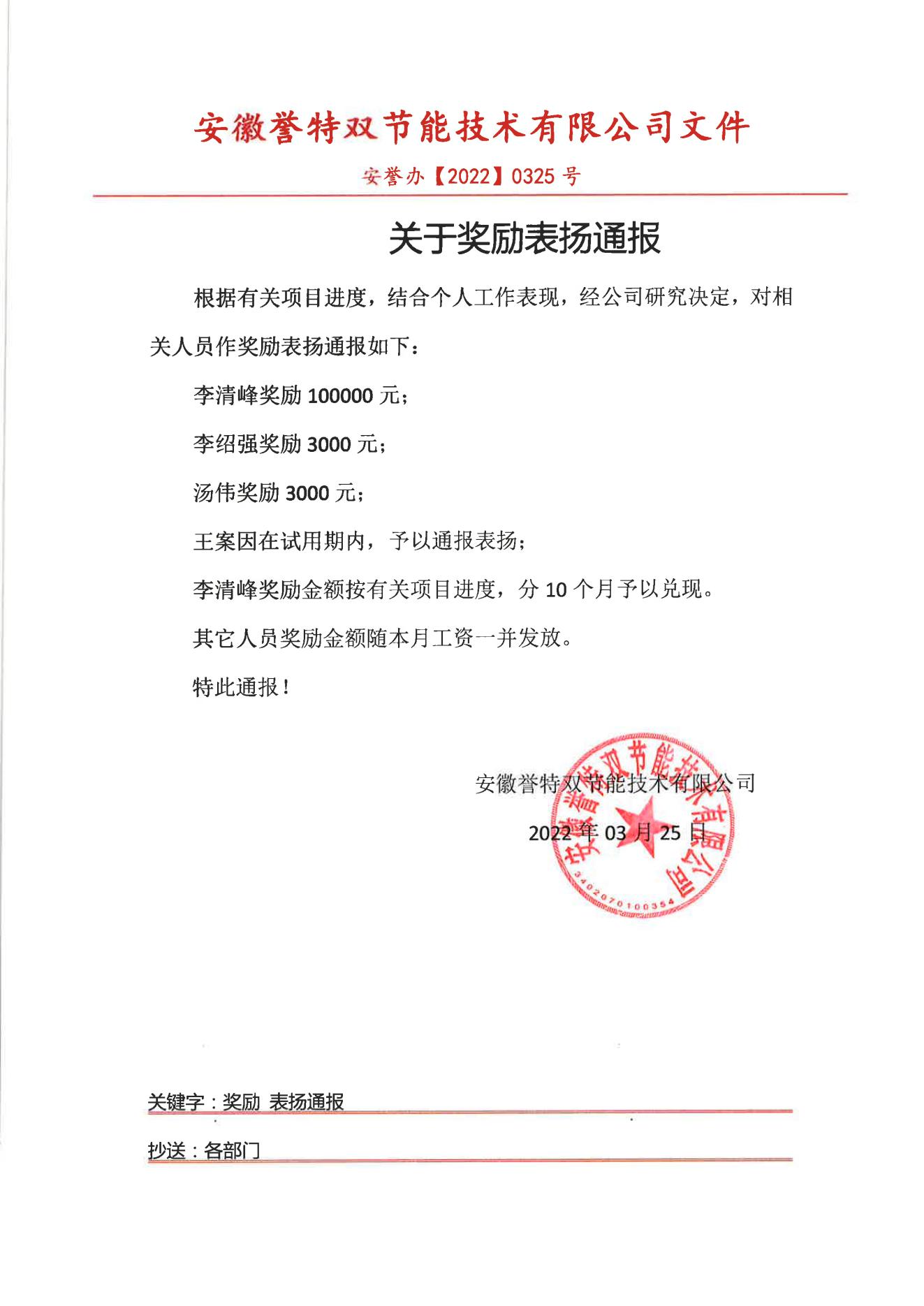 上圖為2022年3月25日臨時獎勵通報