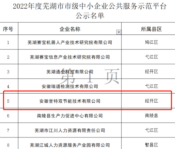 近日蕪湖市經(jīng)濟(jì)和信息化局發(fā)布《2022年度蕪湖市市級(jí)中小企業(yè)公共服務(wù)示范平臺(tái)擬認(rèn)定名單公示》,我公司再次被認(rèn)定為2022年度蕪湖市中小企業(yè)公共服務(wù)示范平臺(tái)。本次全市共計(jì)評(píng)選出8家中小企業(yè)公共服務(wù)示范平臺(tái),其中經(jīng)開區(qū)2家,我公司榮列榜單。
