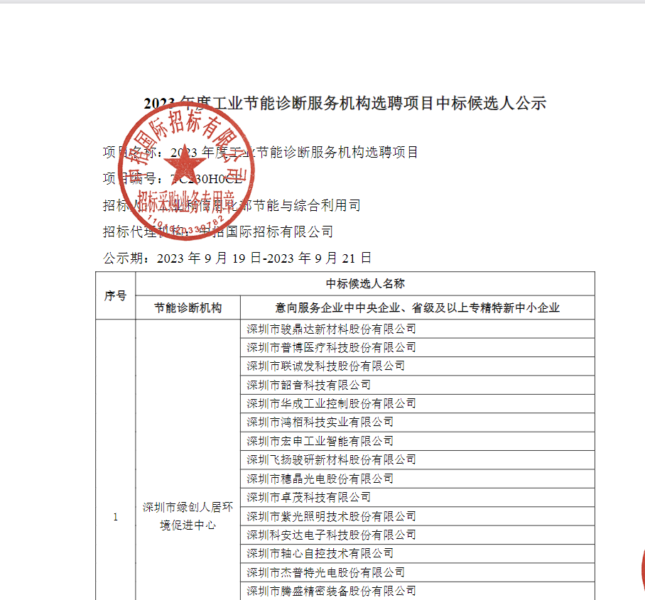 2023年9月,我公司成功中標國家工信部2023年度工業(yè)節(jié)能診斷服務機構(gòu)選聘項目,本次中標也是公司連續(xù)四年中標工信部節(jié)能診斷服務機構(gòu)項目。