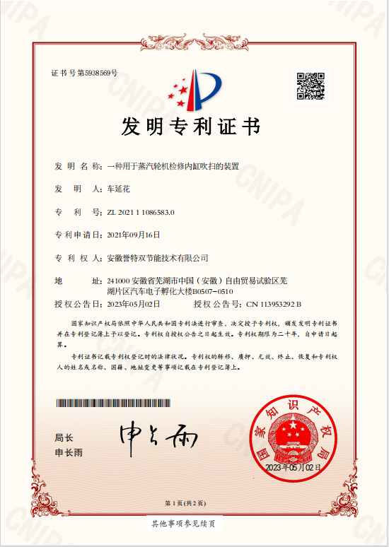 近日,我公司申請(qǐng)的四項(xiàng)發(fā)明專利——“一種采用蒸汽輪機(jī)的循環(huán)發(fā)電裝置”、“一種使用蒸汽輪機(jī)的發(fā)電機(jī)”、“一種用于蒸汽輪機(jī)檢修內(nèi)缸吹掃的裝置”、“一種蒸汽輪機(jī)的安全散熱器”,經(jīng)過受理、一次審查和答辯、實(shí)質(zhì)性審查后,獲得國(guó)家知識(shí)產(chǎn)權(quán)局正式授權(quán)。