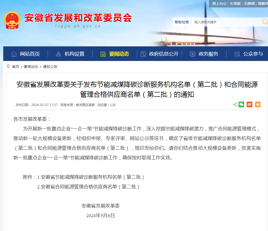 第二批安徽省發(fā)改委節(jié)能減煤降碳診斷服務(wù)機構(gòu)和合同能源管理合格供應(yīng)商資質(zhì)名單