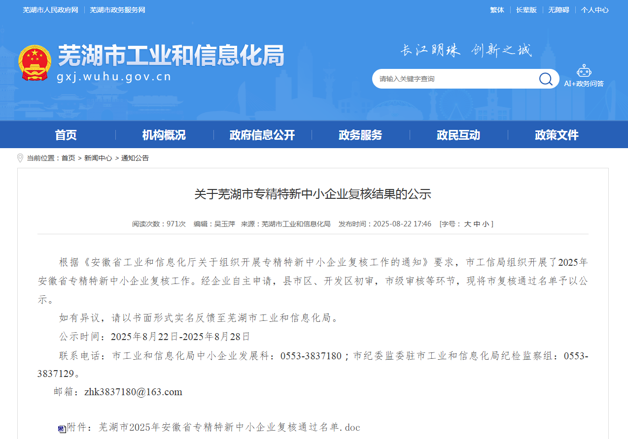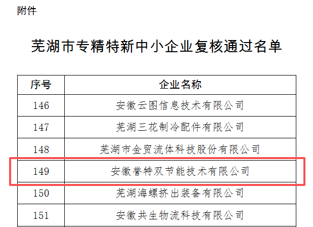 近日,蕪湖市工業(yè)和信息化局公布了“2025年專精特新中小企業(yè)”復(fù)核結(jié)果,我公司憑借持續(xù)的技術(shù)創(chuàng)新能力、扎實(shí)的產(chǎn)業(yè)深耕基礎(chǔ)和優(yōu)異的綜合實(shí)力表現(xiàn),順利通過復(fù)核,繼續(xù)獲評(píng)“蕪湖市專精特新中小企業(yè)”榮譽(yù)稱號(hào)。